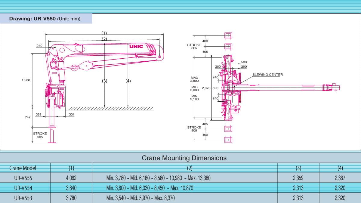 UR-V550 là dòng sản phẩm cẩu dành cho xe tải nặng. Được sản xuất trên nền tiêu chuẩn "V-Series" của UNIC, sản phẩm có thể hoạt động chuyên nghiệp với hiệu quả cao nhất và chi phí thấp nhất.