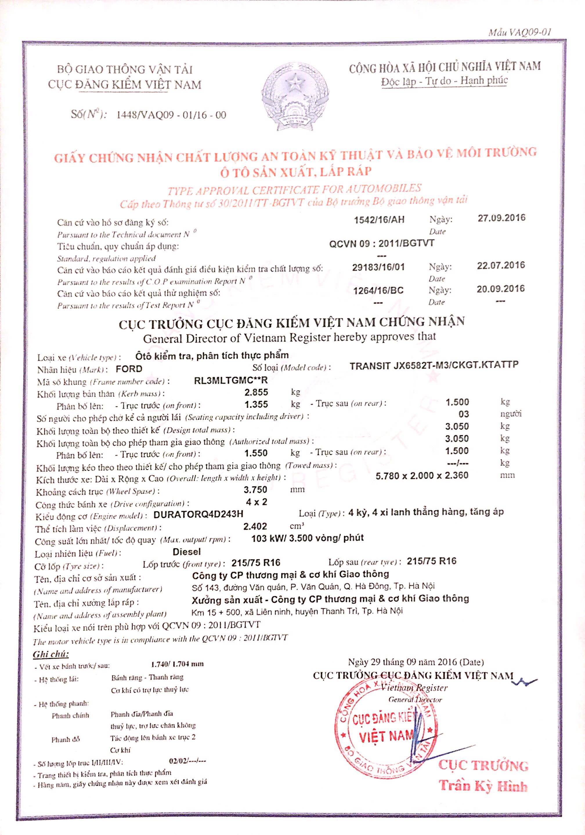 Ô tô kiểm tra, phân tích thực phẩm Ford Transit