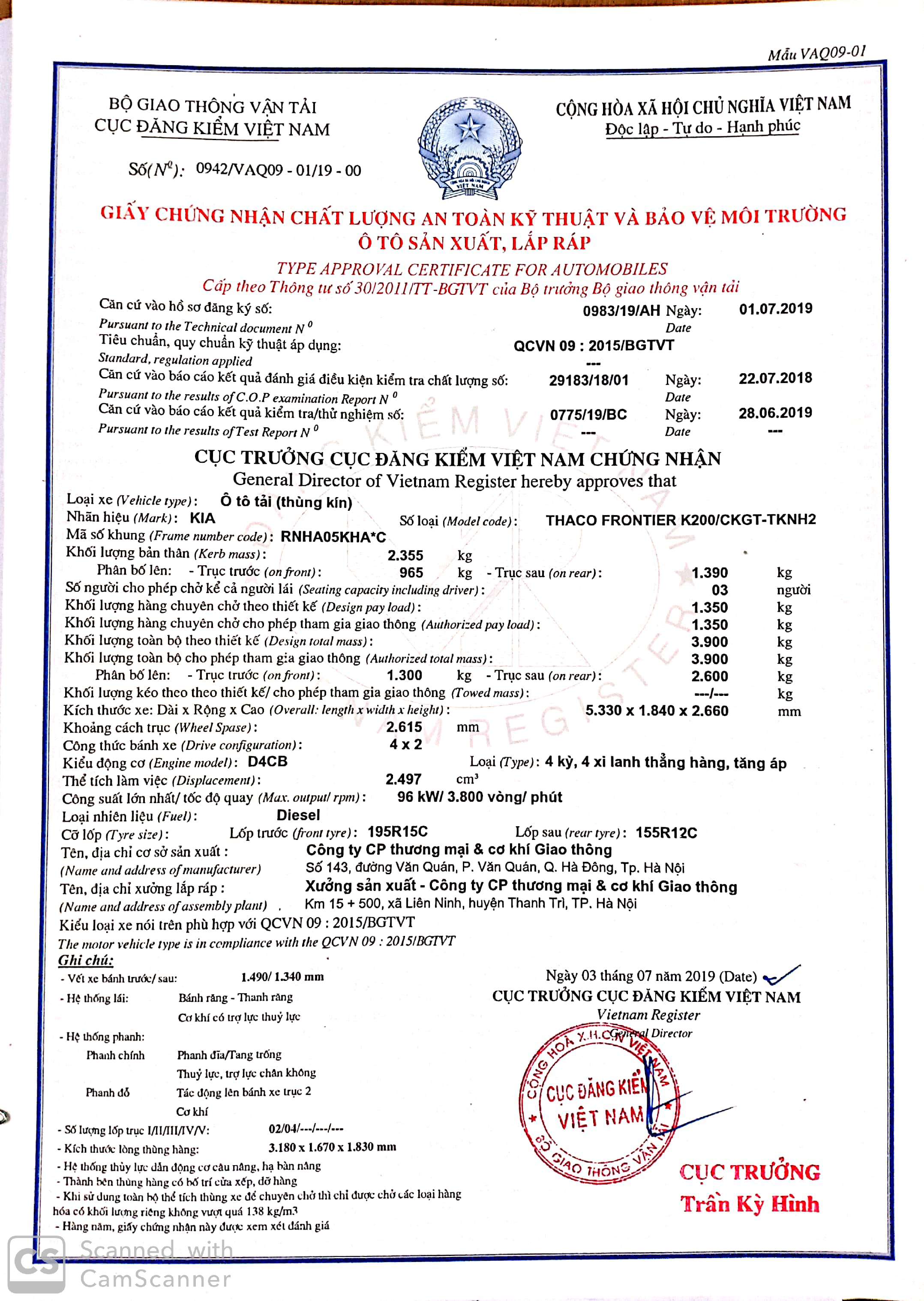 Nhãn hiệu, số loại của phương tiện |