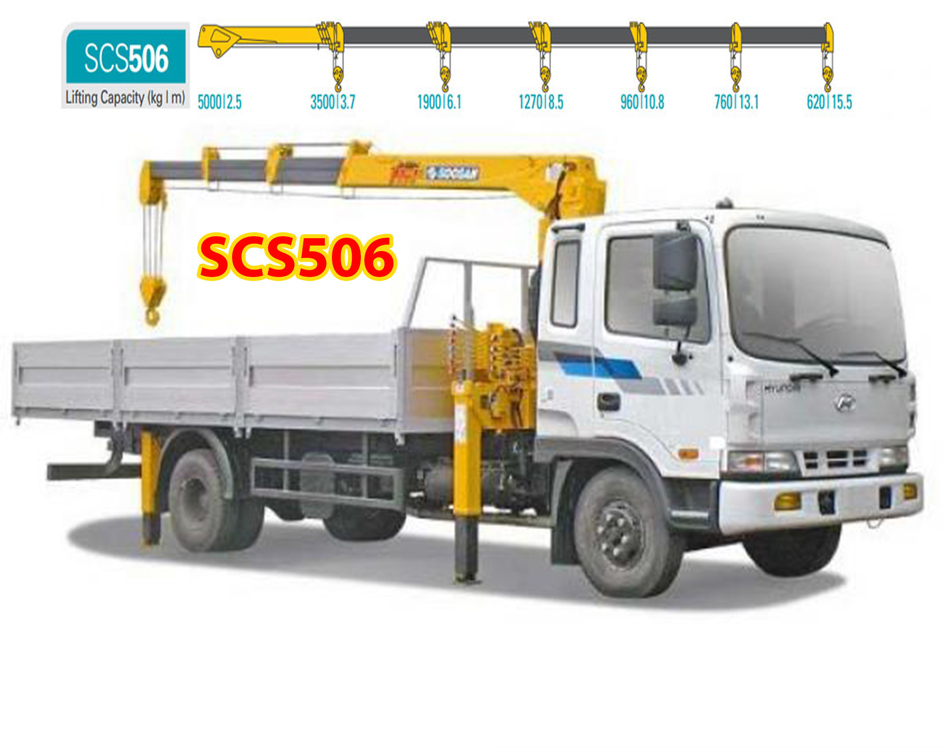 THÔNG SỐ KĨ THUẬT ĐƠN VỊ SCS506 TÍNH NĂNG Sức năng cho phép kg 5000 Mô men nâng tối đa kg.m 13900 Chiều cao nâng tối đa m 17,7 Bán kính làm việc m 15,5 Chiều cao làm việc m 18,5 Công suất nâng/ Tầm với kg/ m 5000/ 2,5 3500/ 3,7 1900/ 6,1 1270/ 8,5 960/ 10,8 760/ 13,1 620/ 15,5 CƠ CẤU CẦN Loại/ Số đốt Hexa/ 6 Tốc độ duỗi cần m/s 11, 8/ 22 Tốc độ nâng cần Độ/s 1-80/ 11 CƠ CẤU...