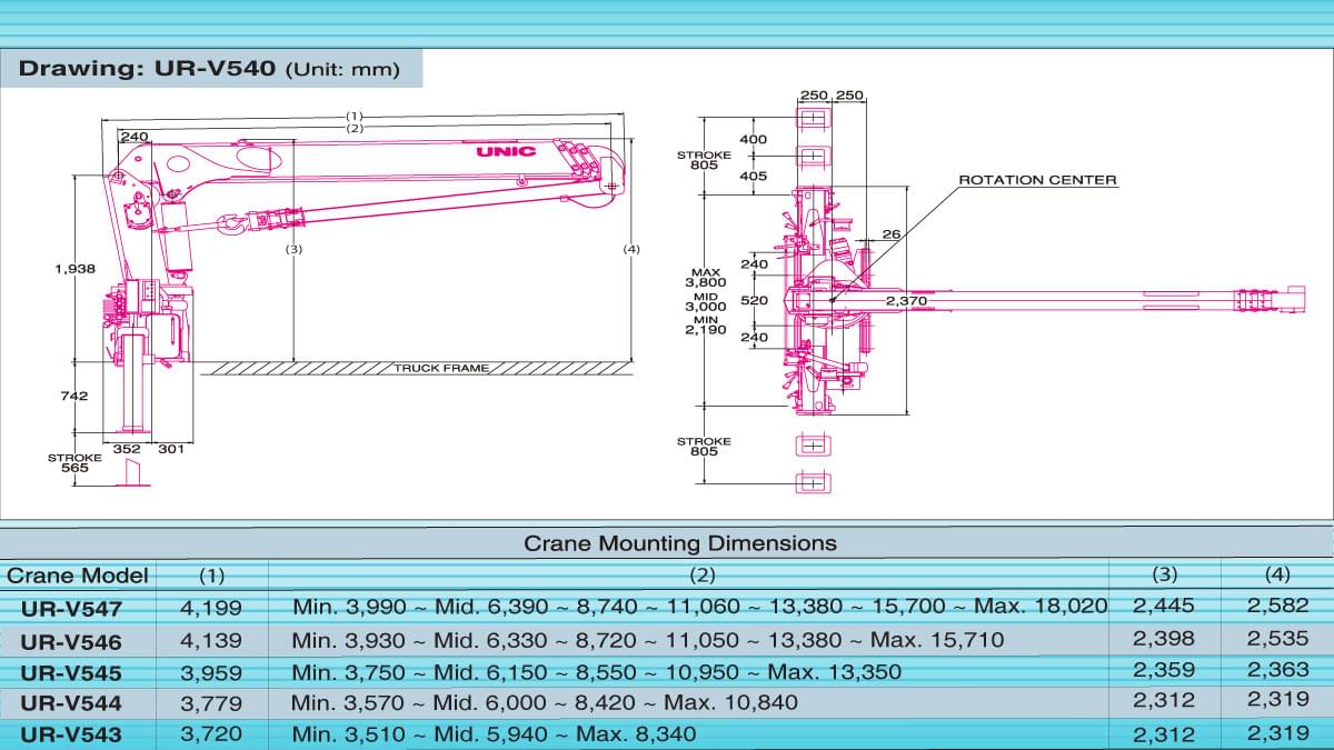 UR-V540 là dòng sản phẩm cẩu dành cho xe tải nặng. Được sản xuất trên nền tiêu chuẩn "V-Series" của UNIC, sản phẩm có thể hoạt động chuyên nghiệp với hiệu quả cao nhất và chi phí thấp nhất.
