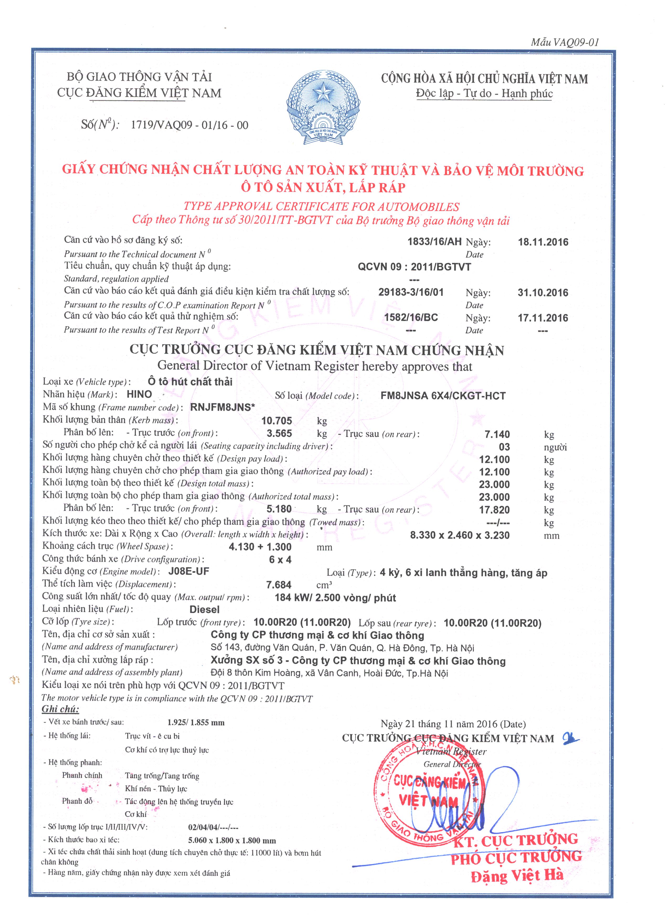 HINO FM8JNSA 6x4/ CKGT- HCT |