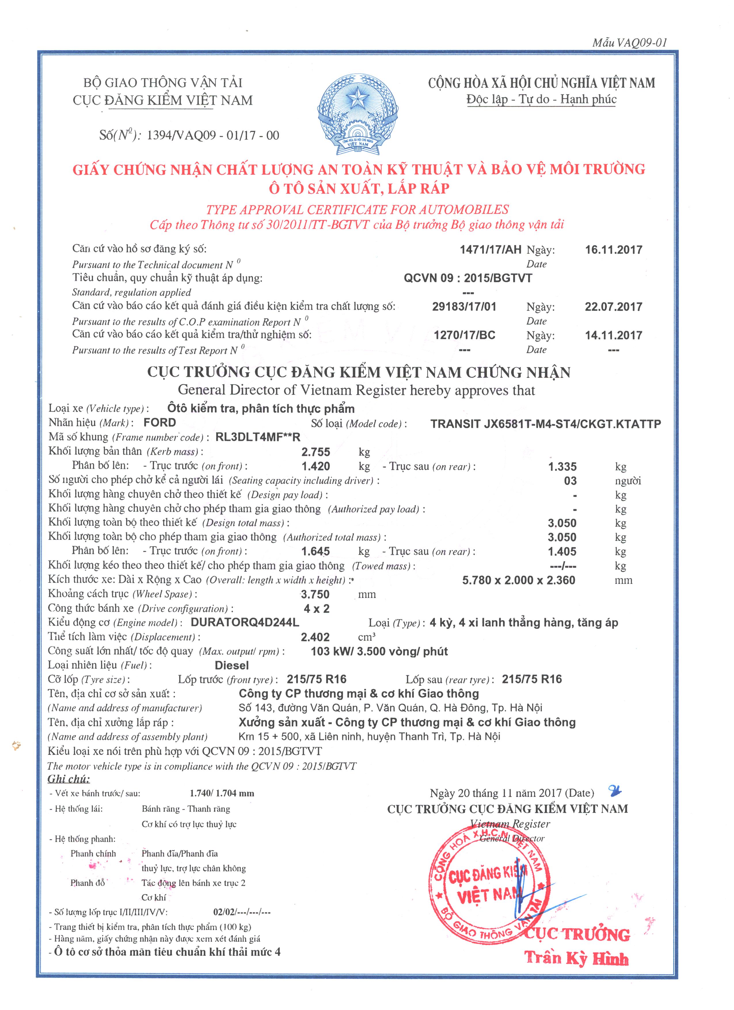 Ô Tô kiểm tra, phân tích thực phẩm FORD TRANSIT JX6581T-M4-ST4/ CKGT.KTATTP