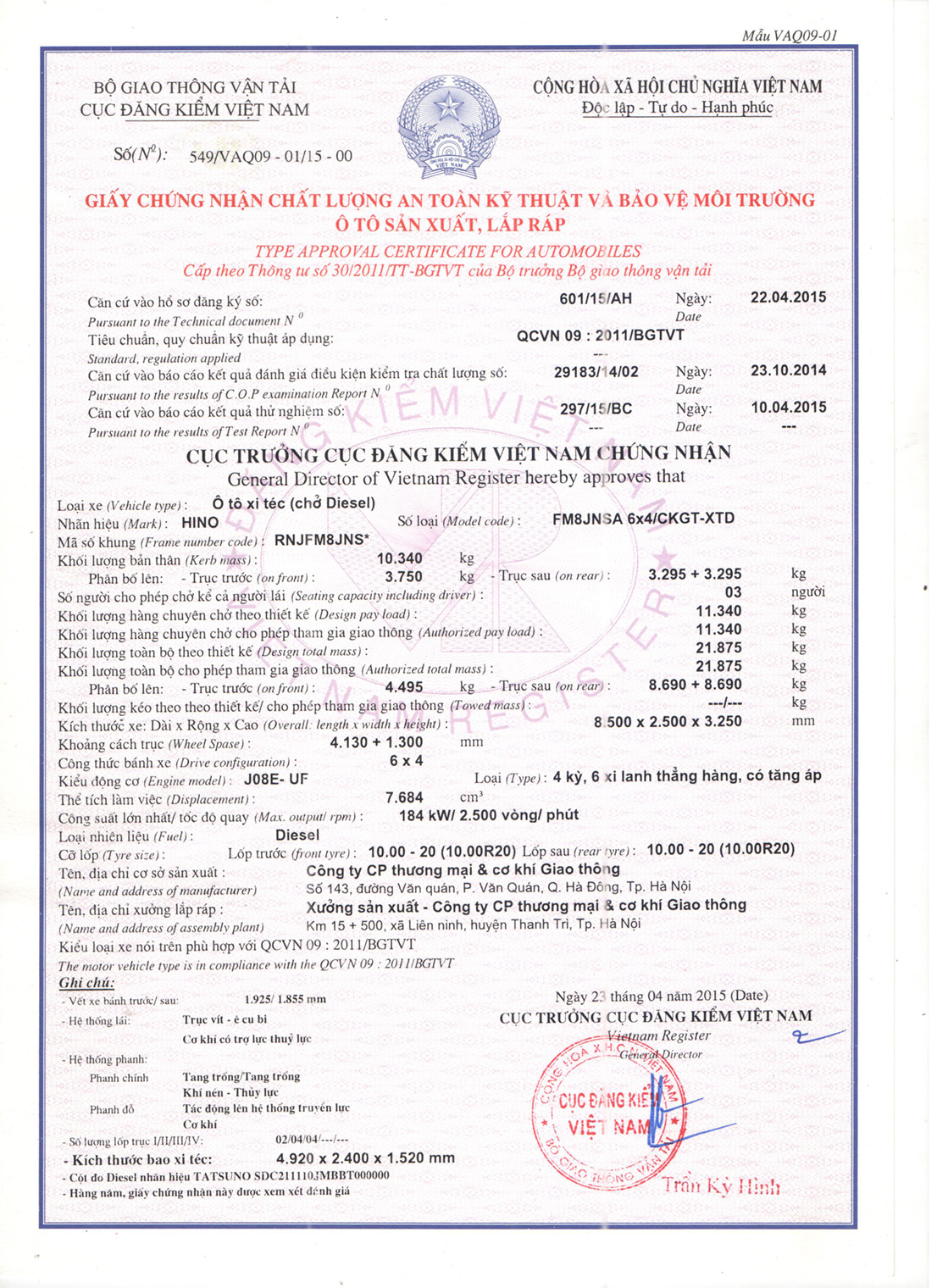 năm kinh nghiệm đóng mới xe tải, xe chuyên dùng, mua bán xe tải. Hiện nay là đại diện phân phối xe tải HINO, JAC, HYUNDAI, ISUZU, cần cẩu thuỷ lực UNIC, SOOSAN, TADANO, KANGLIM ...