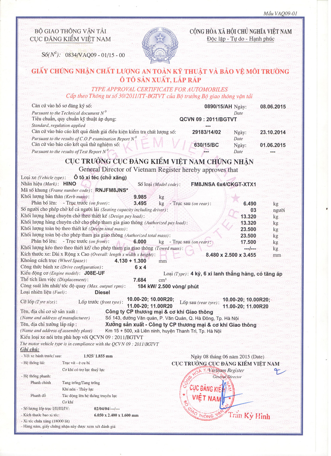 năm kinh nghiệm đóng mới xe tải, xe chuyên dùng, mua bán xe tải. Hiện nay là đại diện phân phối xe tải HINO, JAC, HYUNDAI, ISUZU, cần cẩu thuỷ lực UNIC, SOOSAN, TADANO, KANGLIM ...